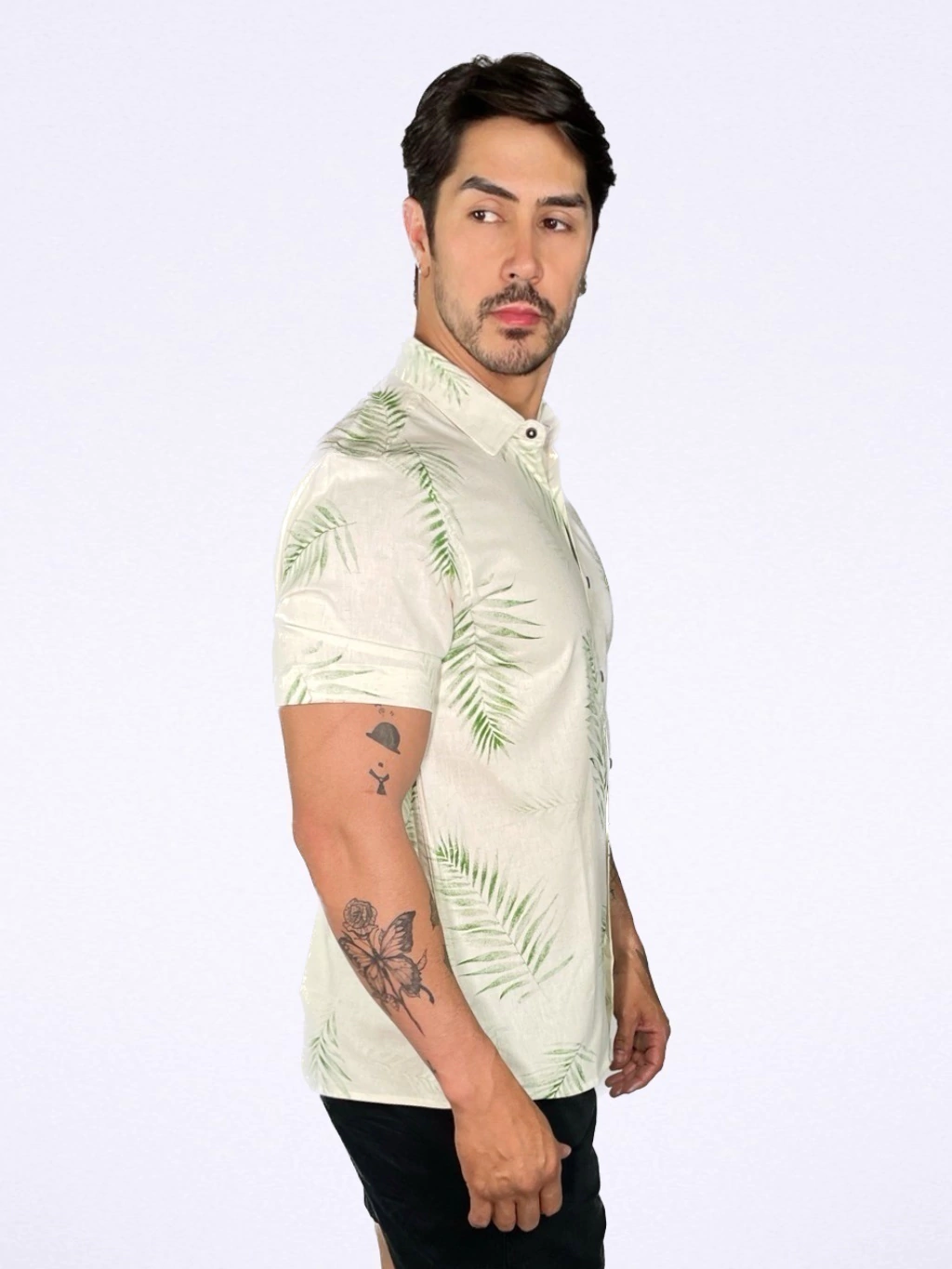 Camisa em tecido misto, apesar de o aspecto do tecido ser de linho, ele na verdade é composto de 55% Algodão, 30% Viscose e 15% Linho. O que faz a camisa ser extremamente confortável, principalemente nesses dias quentes que estamos passando, devido ao tecido deixar nossa pele respirar tranquilamente. A estampa é um charme, a base é em beje (linho cru) e as estampas temos em duas opções, no verde e no azul, ambas muito discretas, feita especialmente para homens que não deixam de manter a elegancia mesmo em dias extremamente quentes.