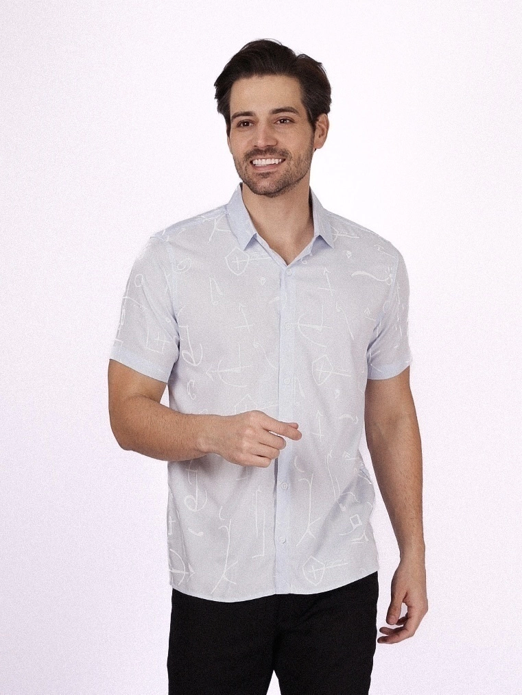 CAMISA MANGA CURTA EM VISCOSE COM ESTAMPA EXCLUSIVA FORMAS (ref. 1651)