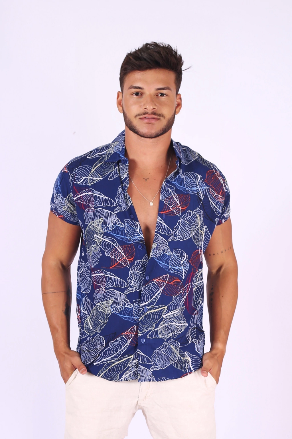 CAMISA MANGA CURTA 100% VISCOSE - ESTAMPA DE FOLHAS COM CORES IRRESISTÍVEIS!(ref. 1605)