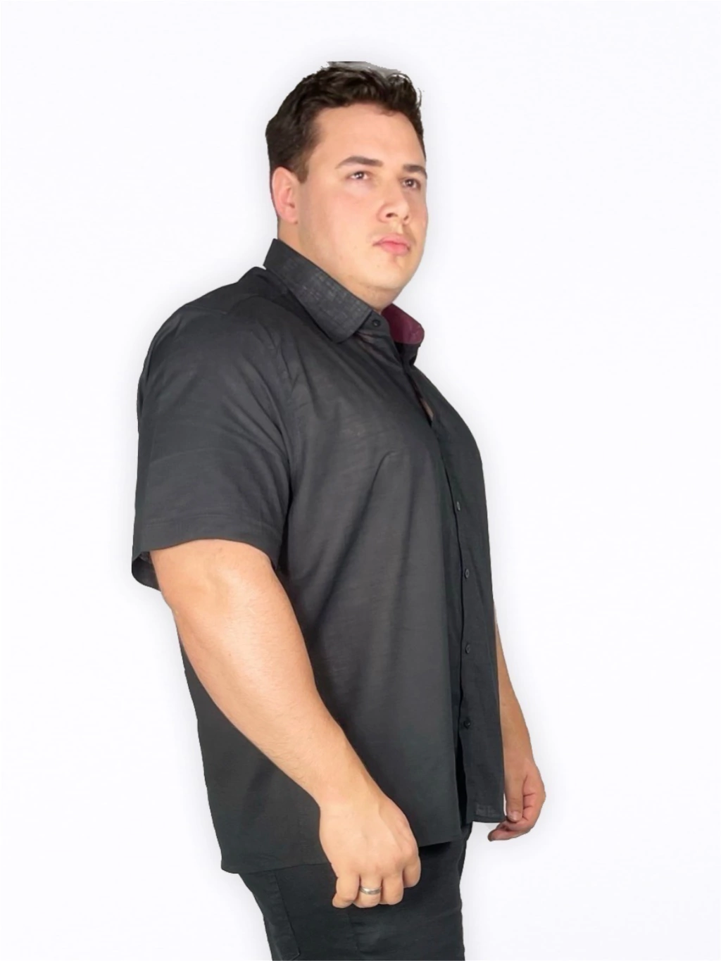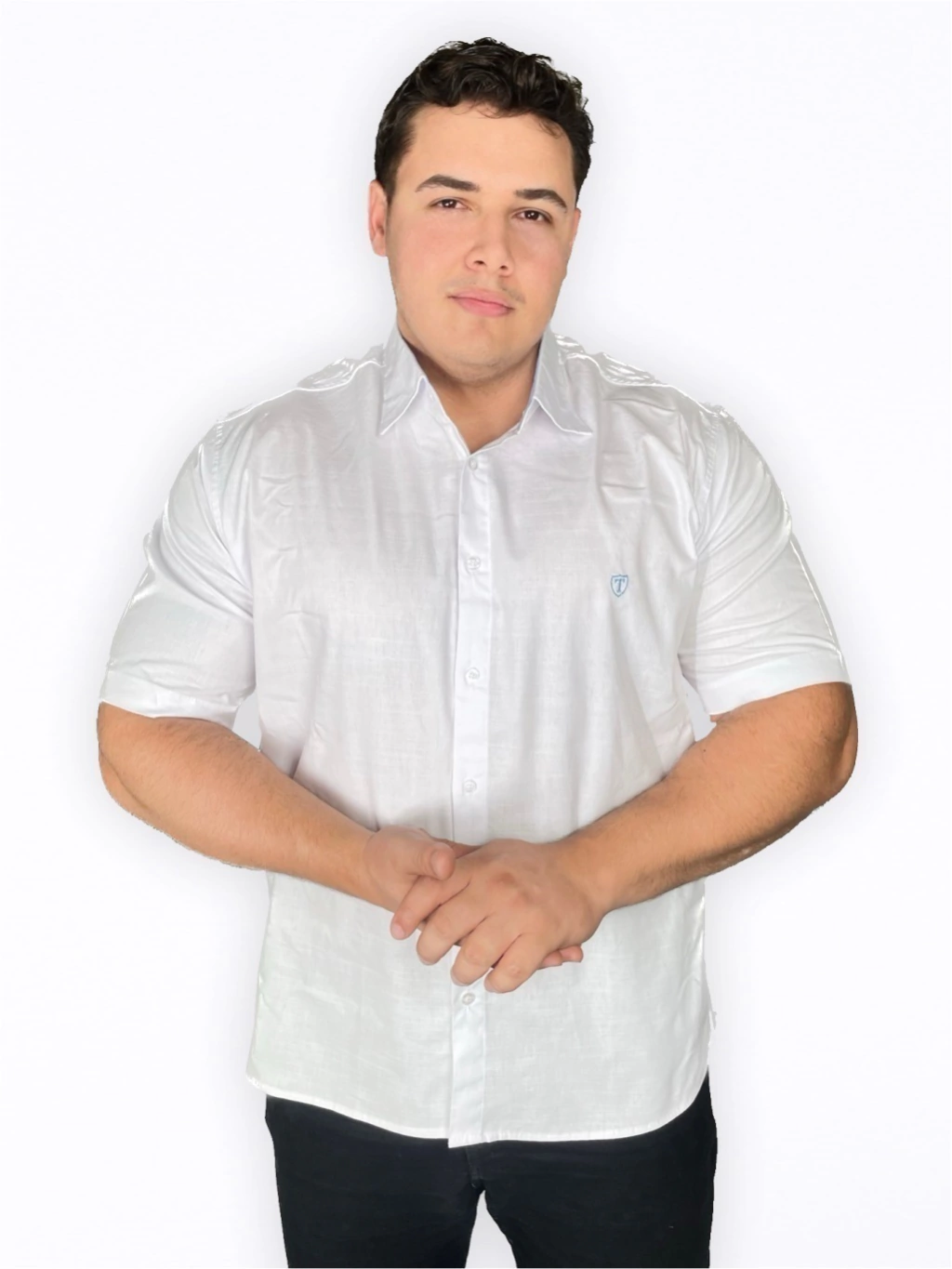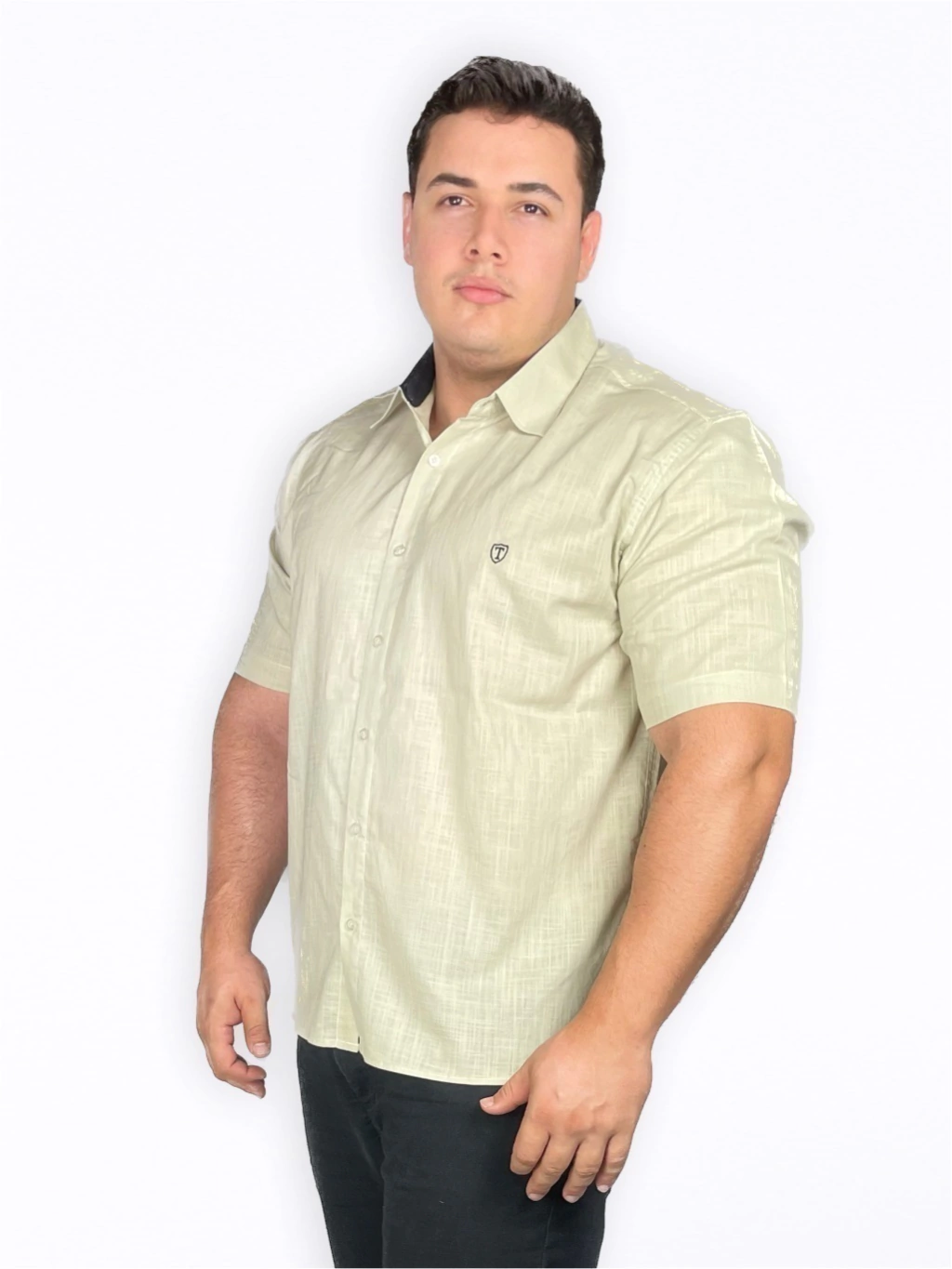 CAMISA MANGA CURTA BÁSICA PLUS SIZE EM "LINHO" - 100% ALGODÃO (ref. 4201)