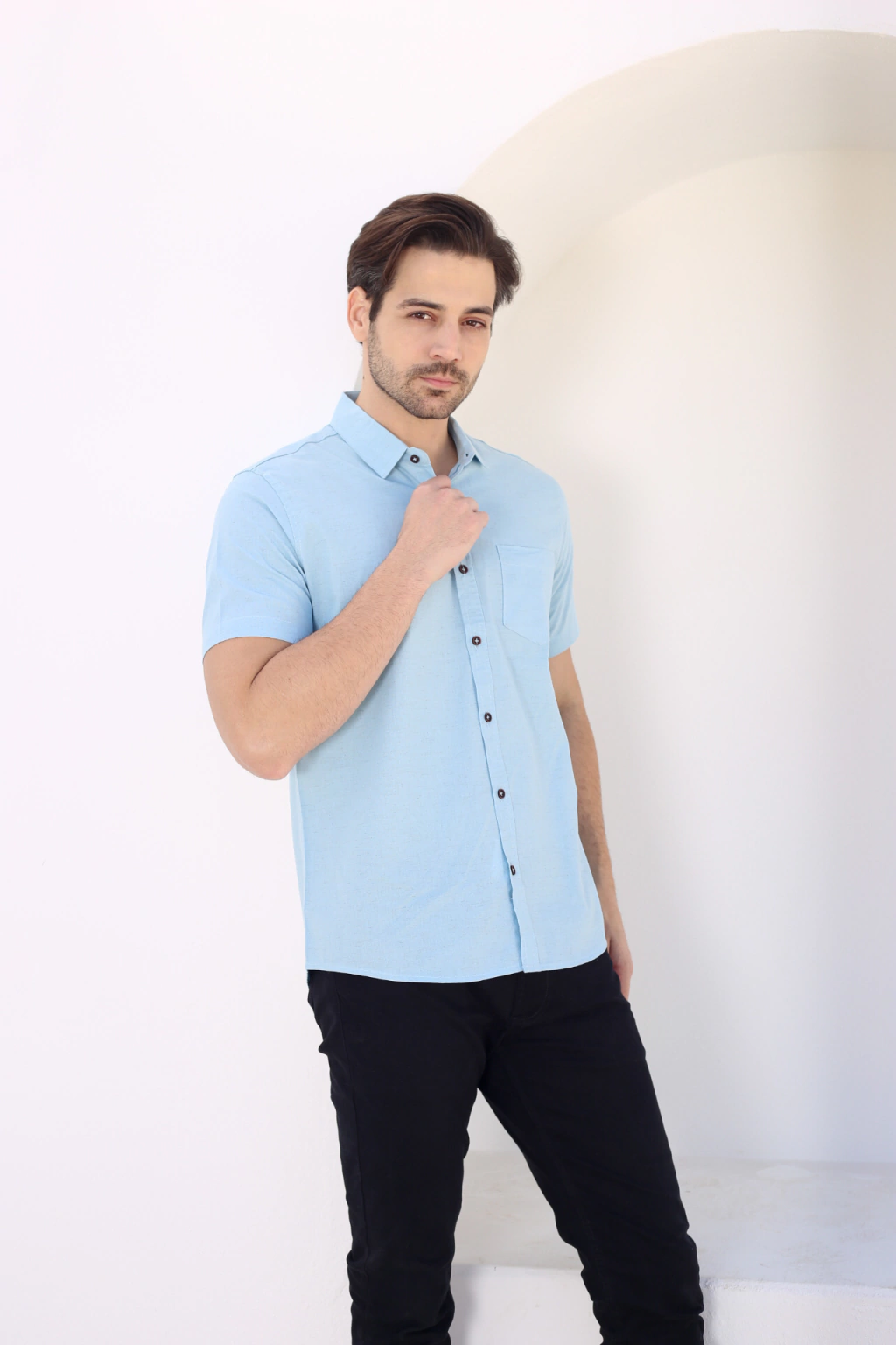 A camisa é feita em tecido composto de 79% algodão, 17% Viscose e 4% Linhoo que oferece à peça o conforto da viscose, a durabilidade do algodão e a beleza do linho, tudo em um único produto.